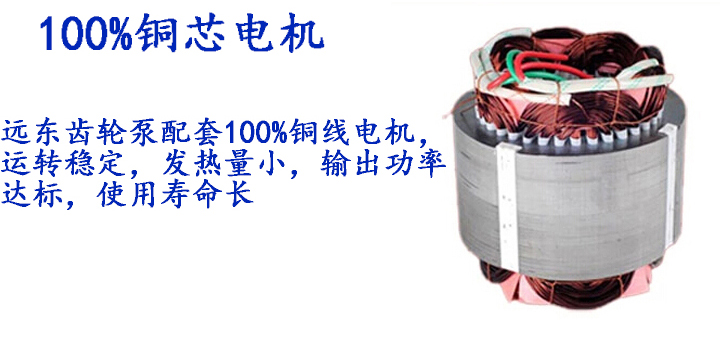 5.天津遠(yuǎn)東齒輪泵配套100%銅線電機(jī),運(yùn)轉(zhuǎn)穩(wěn)定,發(fā)熱量小,輸出功率達(dá)標(biāo),使用壽命長(zhǎng)。